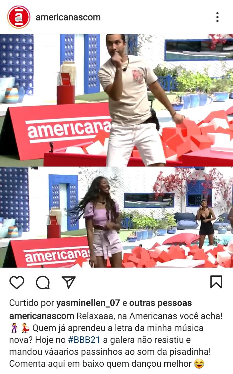 As novidades da campanha vão permear as próximas comunicações da Americanas ao longo do ano, garantindo uma presença 360o e always-on da marca na mídia. Além da ação de lançamento no BBB, o projeto contará com inserções de merchandising em programas de veiculação nacional – Mais Você, Encontro e Se Joga, na TV Globo, e Hora do Faro, na Rede Record – e outros com exibição regional em diversos estados. A campanha também terá anúncios em formato squeeze, vinhetas de TV, veículos impressos e online, ativações com influenciadores e nas redes sociais da Americanas.